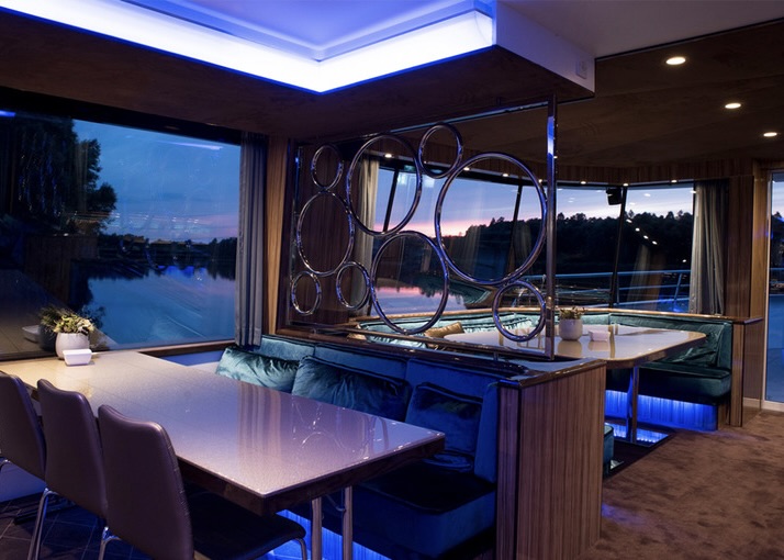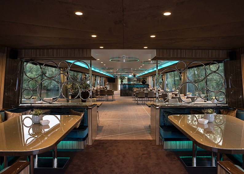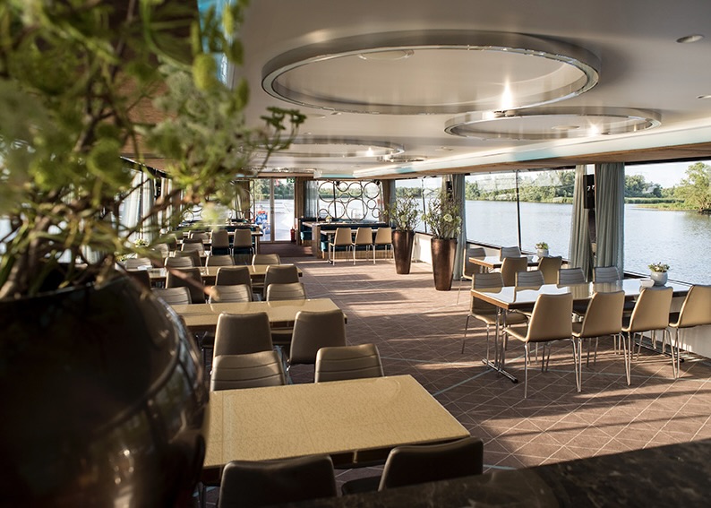 Airconditioning, Artiestenruimte, Buffetlift, Dansvloer, Eigen chefkok, Garderobe, Keuken, Lift, Mindervalidentoilet, Muziekinstallatie, Overdekt dek, Rolstoel toegankelijk, Toilet, Uitgebreide keuken, vaart op groene stroom, volledig electrisch aangedreven, Wi-Fi (op aanvraag), Zonnedek