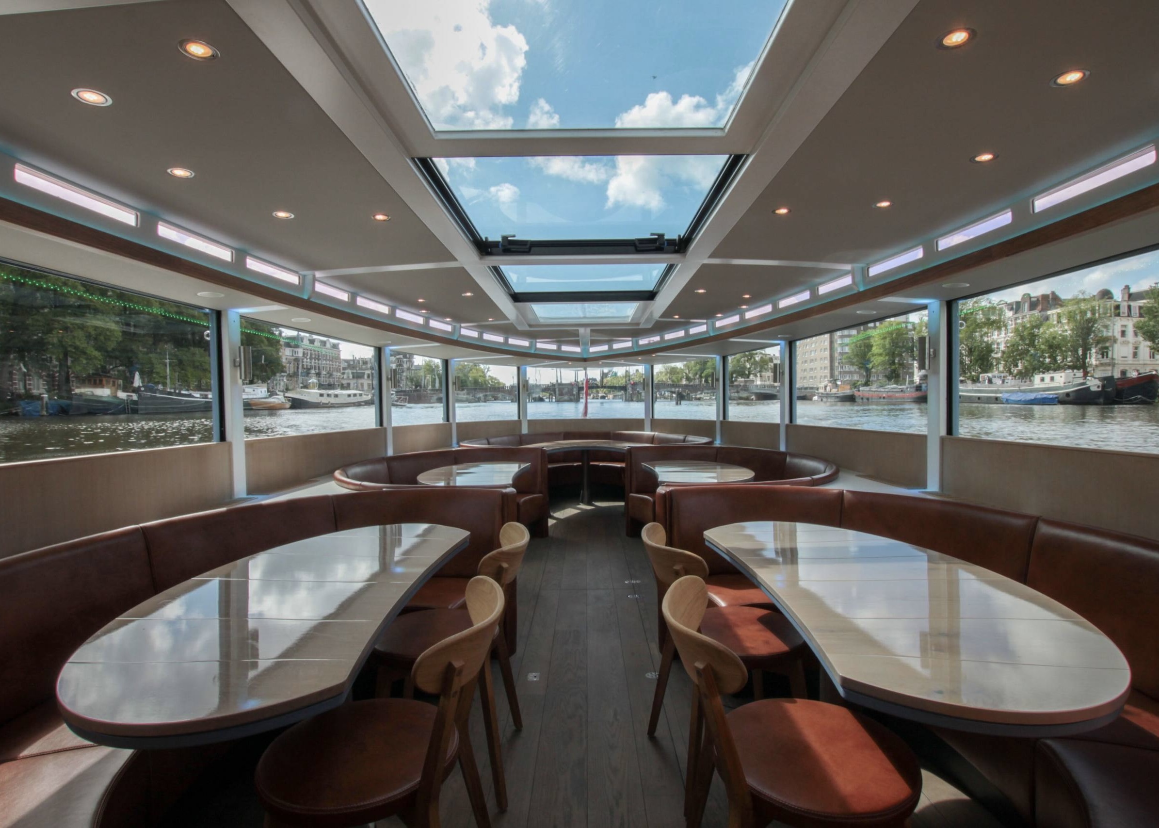 Dit exclusieve schip, de Stan Huygens, werd in 2018 aan de vloot toegevoegd na 27 jaar dienst in Amsterdam. In 2015 werd het interieur tijdens een uitgebreide renovatie gemoderniseerd en werd de oude scheepdiesel vervangen door een elektromotor. Met ruimte voor maximaal 35 personen biedt de Stan Huygens een tijdloos en luxueus interieur, met vijf vaste lederen rondzits in de salon en grote glaspartijen die voor veel daglicht en een prachtig uitzicht zorgen. Er zijn twee volledig uitgeruste bars en een uitgebreid lichtplan voor de gewenste sfeer. Helaas is het schip niet toegankelijk voor rolstoelgebruikers. Op culinair gebied ontbreekt het aan niets, met de mogelijkheid voor een voortreffelijk walking diner en buffetten tot 25 personen vanwege de ruimte. Dankzij haar formaat is de Stan Huygens ideaal voor intiemere gezelschappen die luxe en comfort waarderen. Bovendien is de Stan Huygens bij uitstek geschikt voor zakelijke evenementen, zoals afdelingsuitjes, vergaderingen en jubileumvieringen waarbij stijl en exclusiviteit voorop staan.